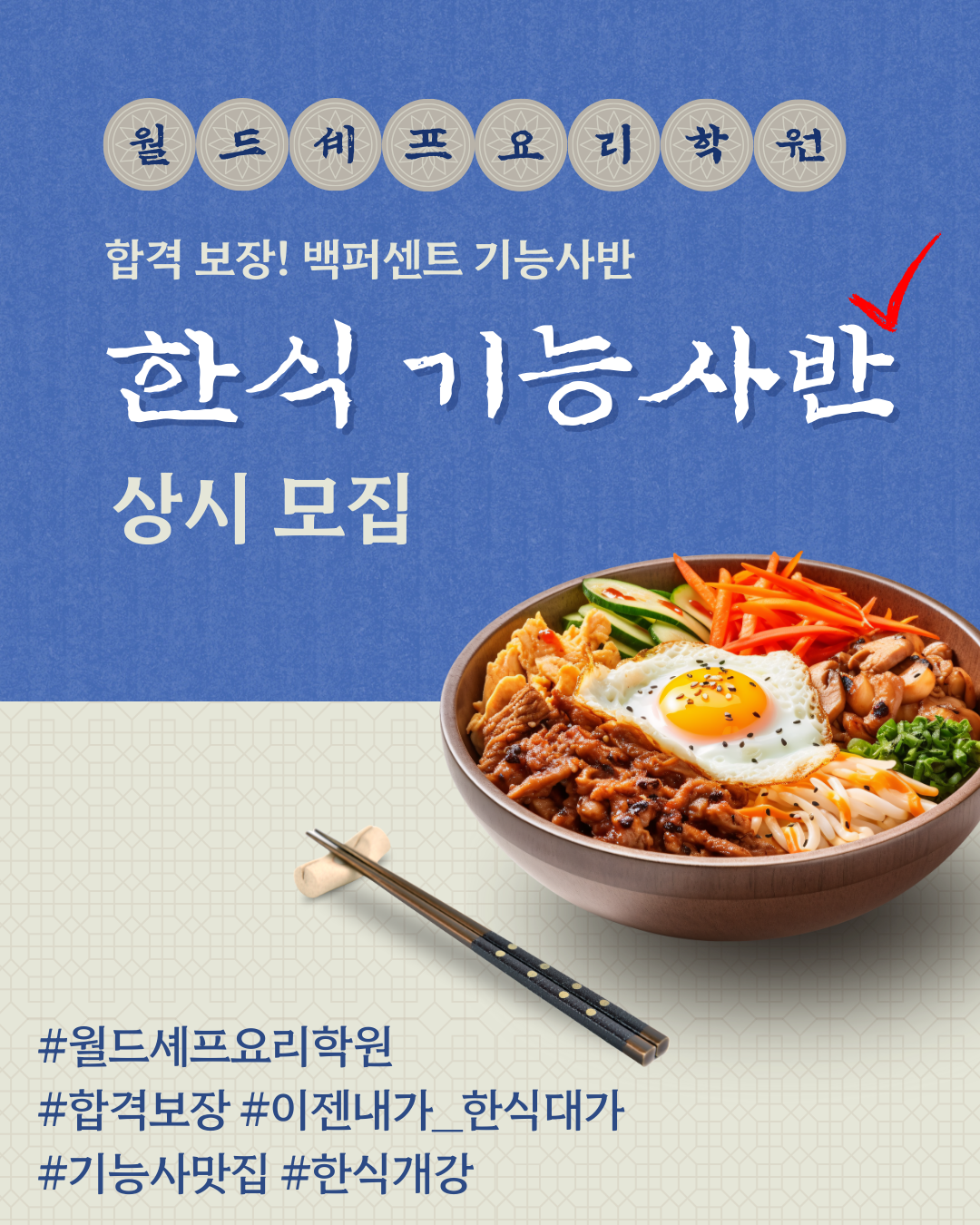 한식, 양식, 중식, 일식, 복어까지! 기능사 자격증 준비는 체계적인 커리큘럼으로 완벽하게 지원합니다.