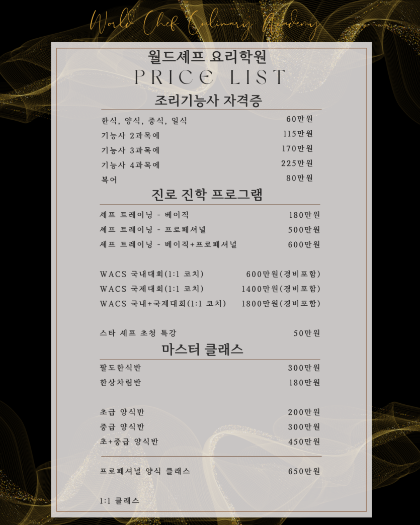 수강료 페이지 정보 작성자월드셰프요리학원 댓글0 조회45 작성일25.12.19 16:23 본문 공유 수강료 다음글1~2월 스케줄 25.12.19 Comment 0 댓글목록 등록된 댓글이 없습니다.